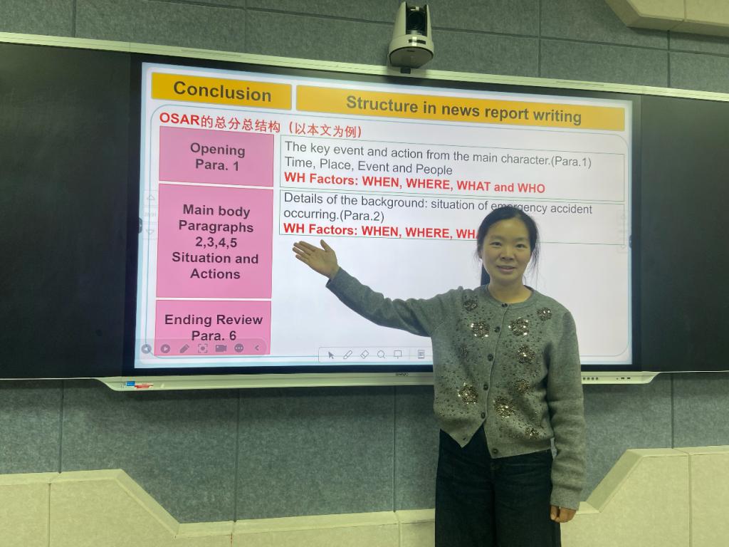 在主题讨论环节,宋冰心老师将思政元素巧妙地融入其中。她以故事为切入点,引导同学们思考个人在社会中的责任和担当。宋老师强调,每一个小小的善举,都可能带来巨大的改变,都可能成为挽救生命的关键。在面对他人危难时,我们要像文中的主人公一样,用自己所学的知识和技能去帮助他人。这种将知识传授与课程思政相结合的教学方式,让同学们在收获知识的同时,也受到了深刻的思想洗礼。