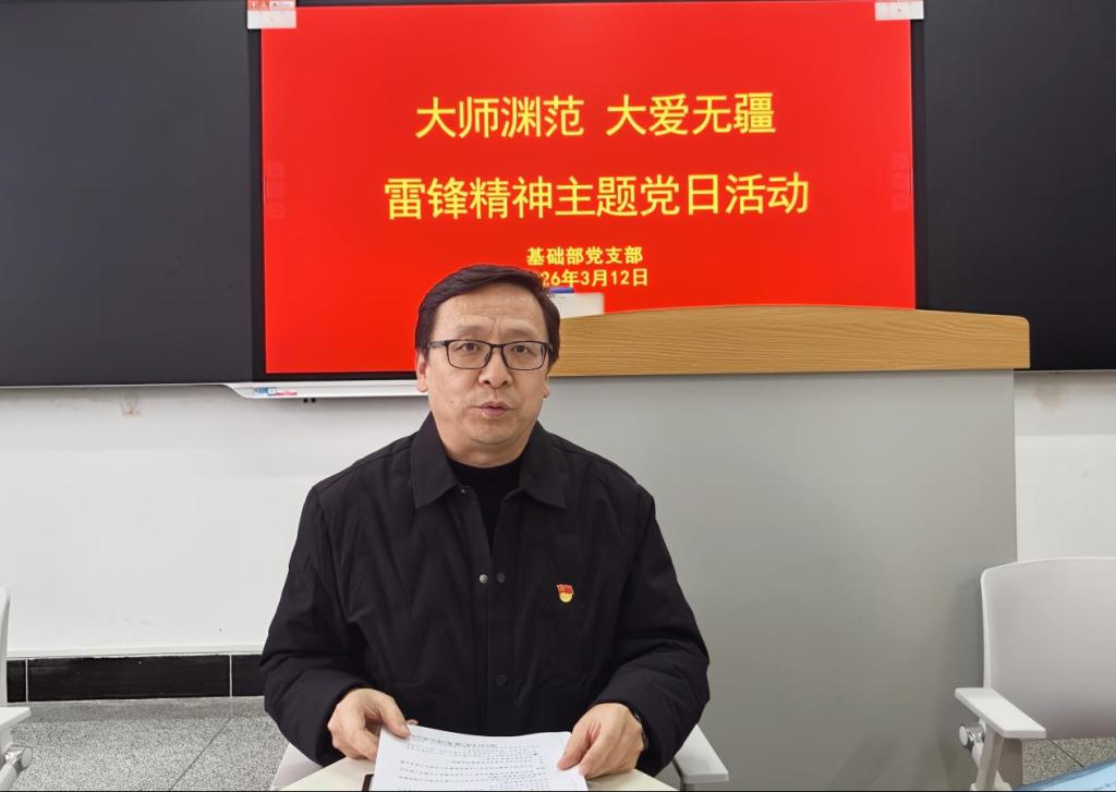 为深入学习贯彻习近平总书记对弘扬雷锋精神的重要指示精神,传承榜样力量,凝聚奋进动力,3月12日下午,基础部党支部在宝福路校区401室以 “大师渊范 大爱无疆” 为主题,开展雷锋精神学习主题党日活动。会议由基础部党支部书记李明同志,全体党员参加。