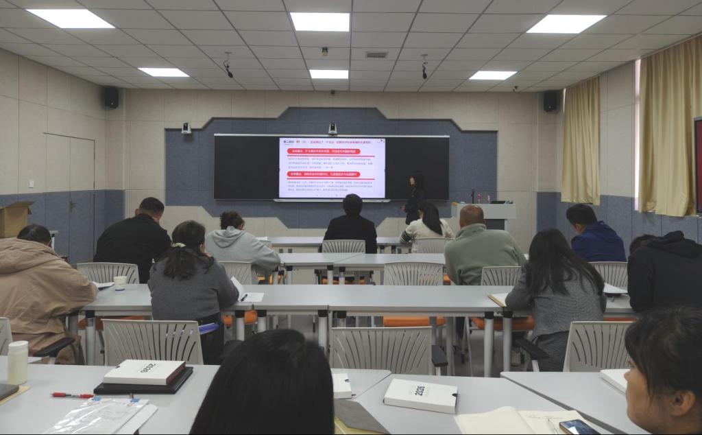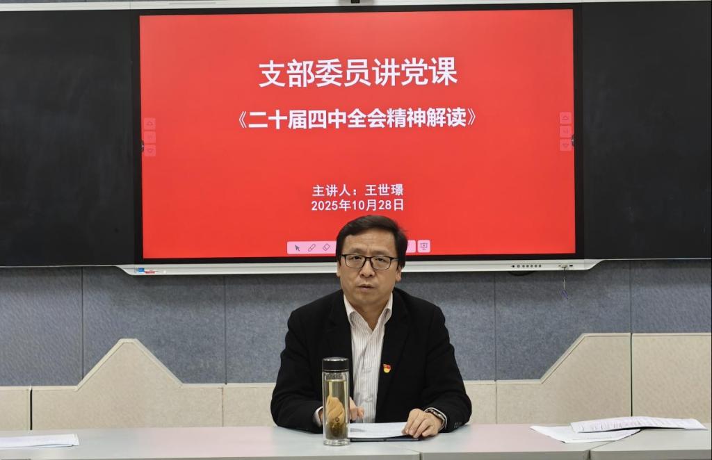 为引导党员深刻领会、准确把握党的二十届四中全会精神的重大意义与核心要义,切实将学习成果转化为推动部门高质量发展的强大动力,10月28日下午,基础部党支部在蟠龙校区506室开展二十届四中全会精神解读专题党课。本次党课由基础部党支部书记李明主持,支部宣传委员兼纪检委员王世璟主讲,全体党员参加。