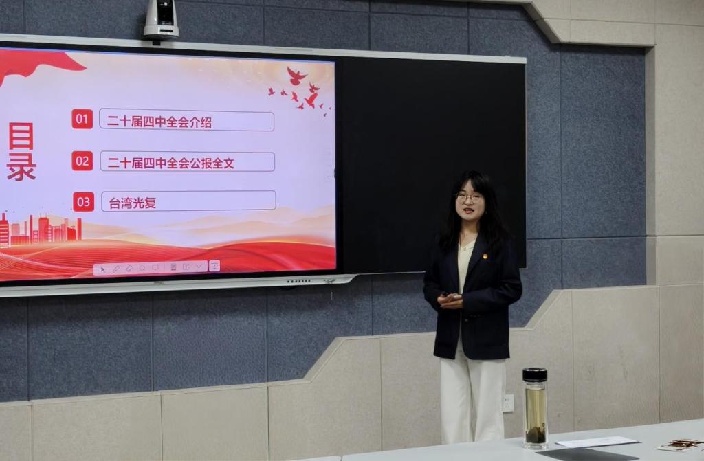 最后,党支部书记李明强调,此次全会是在我国迈上全面建设社会主义现代化国家新征程、向第二个百年奋斗目标进军的关键时刻召开的一次十分重要的大会,并结合工作实际,就如何将党的二十届四中全会精神贯彻到日常教学与管理中进行了深入发言,强调要不断提升政治素养,强化责任担当,确保全会精神在基础部落地生根。