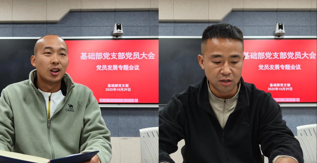 随后,在预备党员接收环节,郝玮、李根旺两位申请人发展期间个人表现,表达了加入党组织的坚定决心和为人民服务的崇高理想。培养联系人也分别介绍了两位申请人的入党动机、政治立场、思想觉悟、学习工作表现以及群众基础等方面的情况。经过无记名投票表决,大会一致同意接收郝玮、李根旺为中共预备党员。