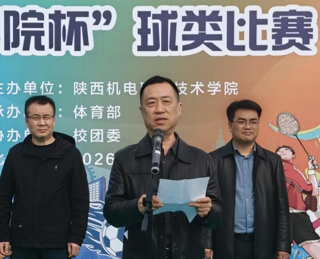 宣誓完毕,在热烈的掌声中,张克宣布:“陕西机电职业技术学院‘学院杯’球类比赛开幕!”,并为首场比赛开球。